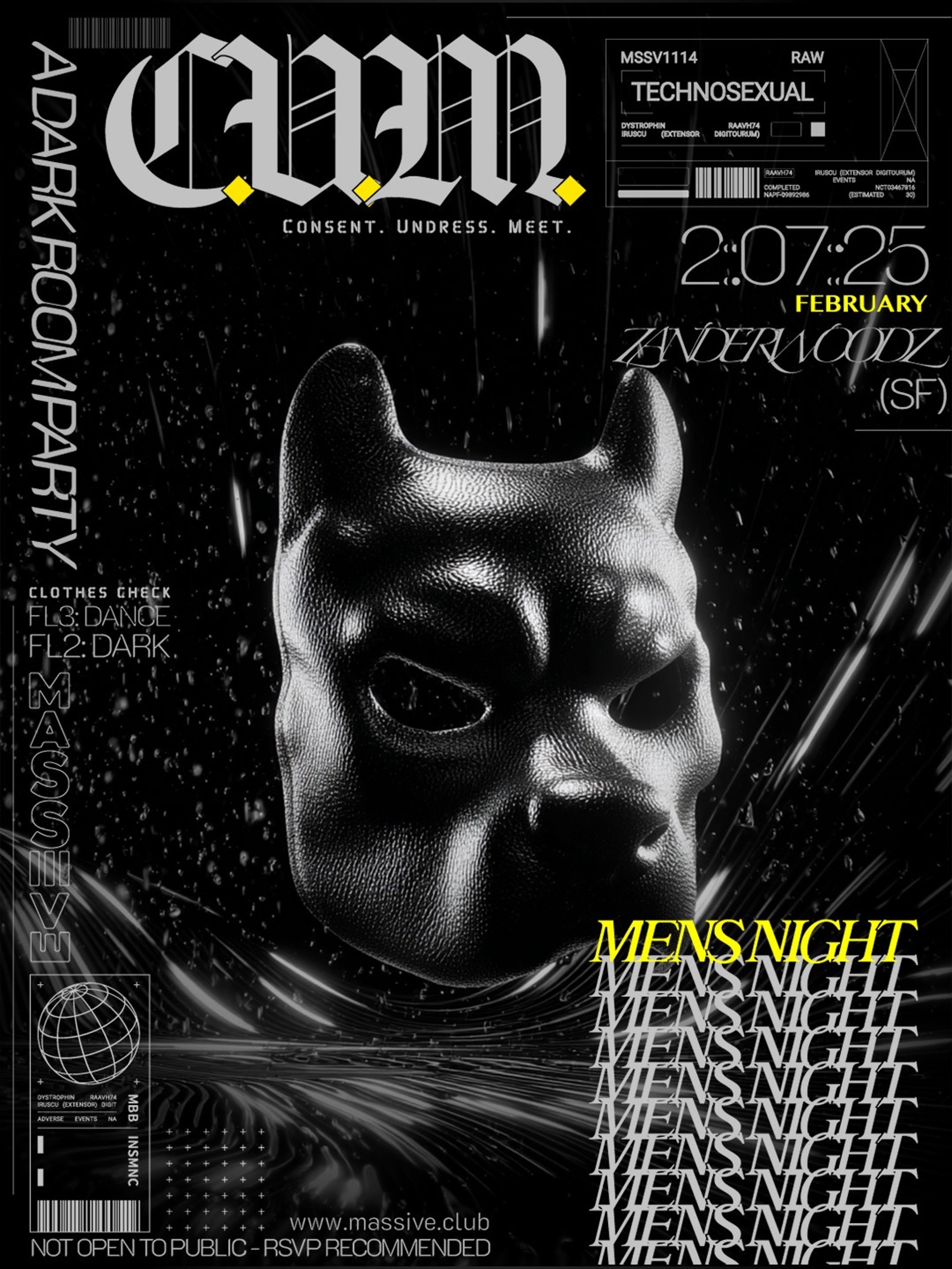 Massive's new strictly mens night and dark room party with techno goodness, featuring Zanderwoodz (SF), RSVP at the link to vet pay only $10 at the door.